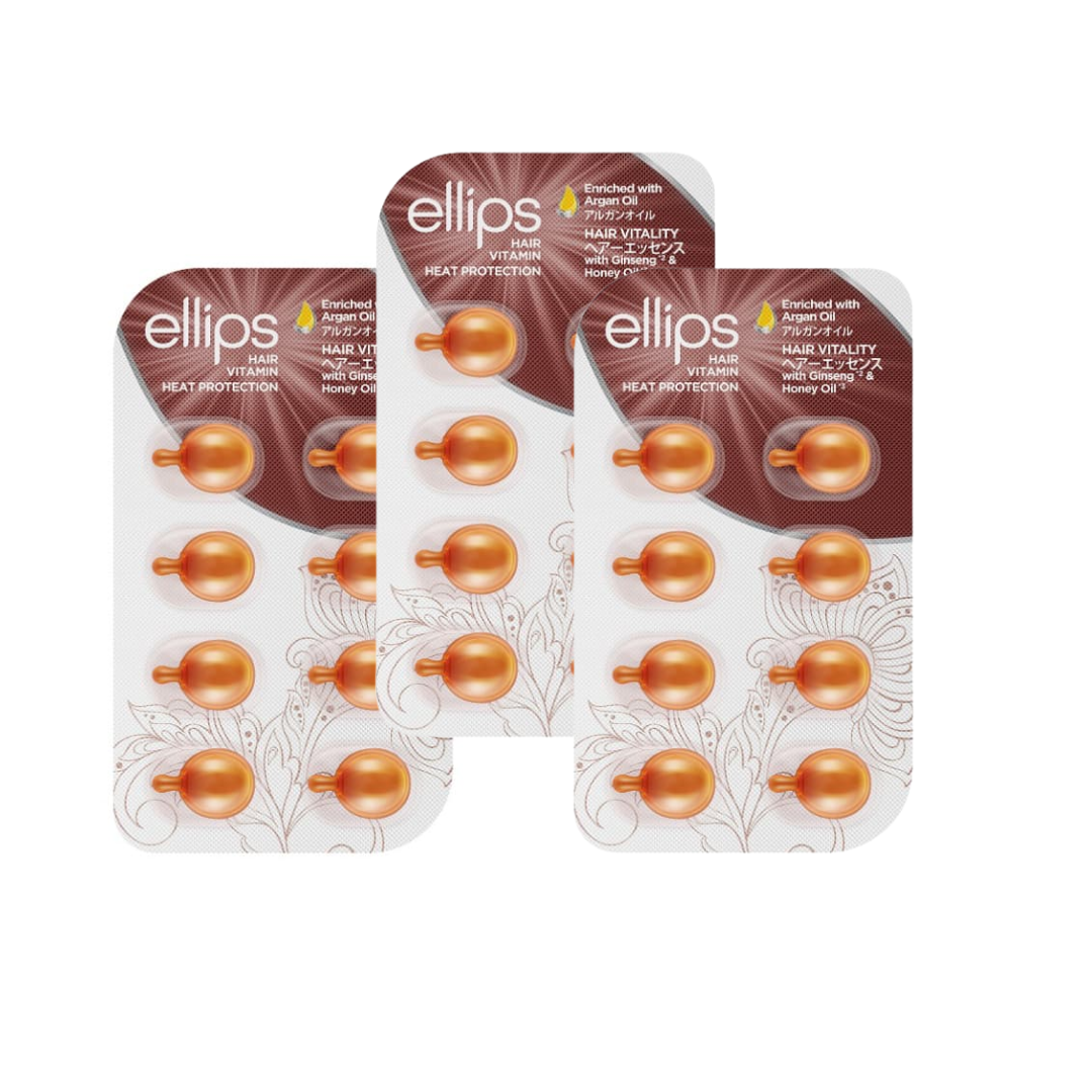 Ellips vitamina capilar vitalidad enriquecido on aceite de argan Ginseng, Aceite de miel ¡, Vitamina A, C, E y Pro Vitamin B5 para nutrir y proteger el cabello quebradizo y frágil. Protector térmico. Consigue un cabello más sano y brillante.